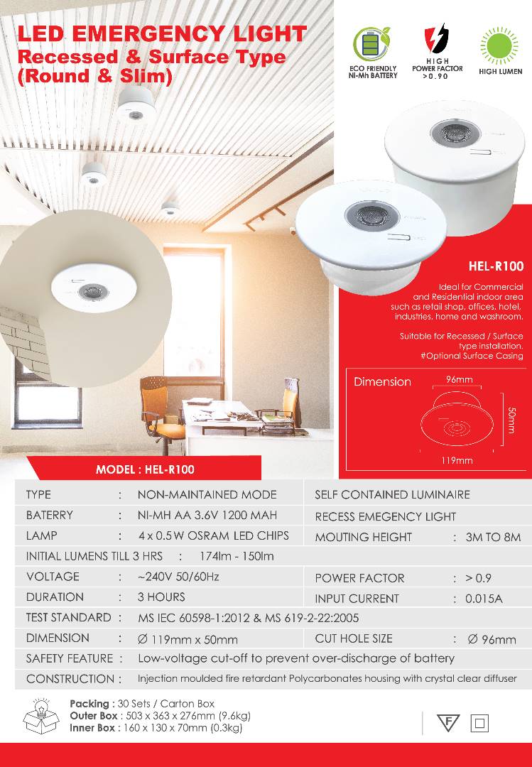 HAICO Led Emergency Light (HEL-R100)- RECESSED OR SURFACE